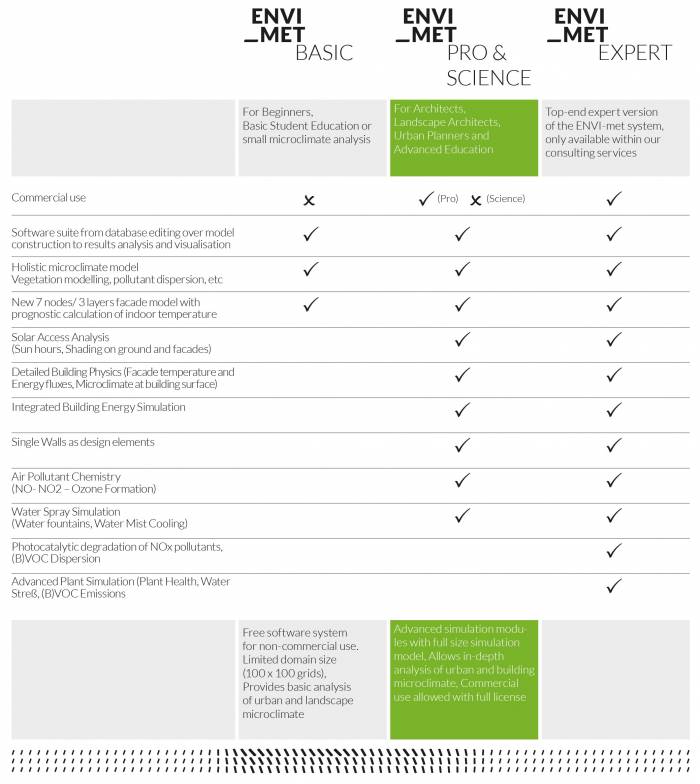 Starting with V 4.0 from 1st July 2016, there will be from now on three versions of ENVI-met available: